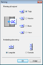 Hvis dokumenter er lagt i materen, angir du retningen for dokumentene i [Retning]. Du kan også angi [Innbindingsplassering] hvis 2-sidige dokumenter er lagt i materen.