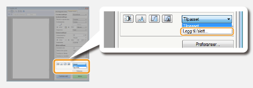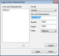 Hvis du velger [Legg til/slett], kan du legge til nye innstillinger for utskriftsformat og slette innstillingene som er lagt til.