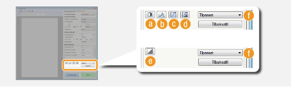 Når du skanner et dokument med OCR-programvare eller et annet program, kan det hende at ScanGear MF-skjermbildet ikke vises. I slike tilfeller skannes dokumentet i henhold til innstillingene i programmet. Hvis innstillingene nedenfor imidlertid ikke finnes i programmet, aktiverer du dem her, slik at de brukes for skanning.