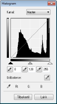 Et histogram er en graf som viser fordelingen av lysstyrke i et bilde. Du kan justere bildet mens du kontrollerer forhåndsvisningsbildet og histogrammet. Angi hvilken del av bildet du vil gjøre lysest (eller mørkest) i forhåndsvisningsbildet, slik at lysstyrkebalansen i originalbildet justeres automatisk med den angitte delen som et gjennomsnitt. På samme måte kan du også justere balansen med lysstyrken til middeltonen som gjennomsnitt.