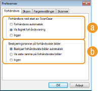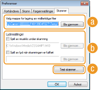 Klikk på [Preferanser] for å konfigurere forskjellige innstillinger, inkludert operasjoner ved skanning.