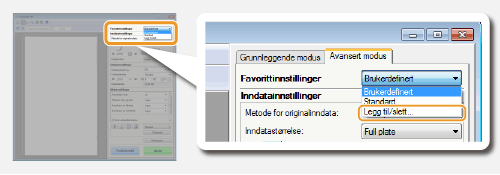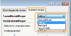 Det er tidkrevende å konfigurere fargemodusen, bildekvaliteten eller andre innstillinger hver gang du skanner. Hvis du registrerer innstillinger som brukes ofte, som favorittinnstillinger, kan du ganske enkelt hente frem de registrerte innstillingene under skanning.
