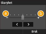 Du kan justere skarpheten for bildet. Øk skarphet for å få skarpere tekst og linjer eller reduser skarpheten for å forbedre utseendet til fotoer fra ukeblader.