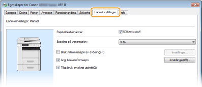 Merk av i boksen [Bruk Administrasjon av avdelings-ID]. Faksdriver