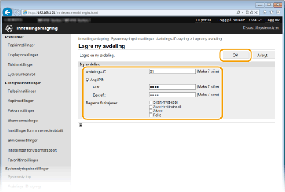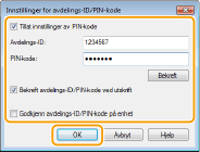 Merk av i denne boksen for å aktivere PIN-innstillingen. [Avdelings-ID]