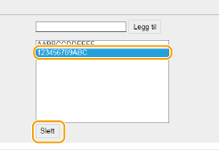 Hvis MAC-adresser blir angitt feil, kan det hende at du ikke får tilgang til maskinen fra Fjernkontroll. I så fall må du angi <MAC-adressefilter> til <Av>. MAC-adressefilter