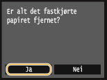 Papir Kontroller at det ikke er noen fastkjørte papirfragmenter igjen i maskinen.