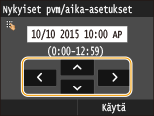 / näytetään, siirrä kohdistinta napauttamalla.ArvoalueSyöttökentän alapuolella sulkeissa ( ) näytetyt arvot ovat syötettävien arvojen rajat.