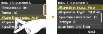 Voit vaihtaa erilaisia näyttöön liittyviä asetuksia, kuten vieritysnopeutta ja näyttökielen: Näyttöasetukset