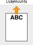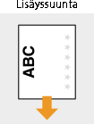Lisää paperi etulogopuoli (se puoli, jolle asiakirjan ensimmäinen sivu tulostetaan) ylöspäin.