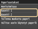 <Kasetti 2> näytetään vain, jos laitteeseen on asennettu valinnainen syöttölaite (kasetti 2).