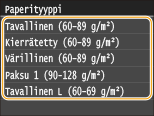 Paperikasetissa olevan paperin koon ja tyypin määrittäminen