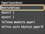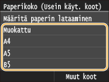 -painiketta ja napauta kohtaa <Paperiase-tukset>.