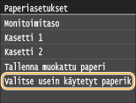 Voit varmistaa, että vain usein käyttämäsi paperikoot näkyvät näytössä paperikoon asetuksen valinnassa.