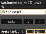 Syötä hakukohteen merkkijono numeronäppäimillä ja napauta <Käytä>.