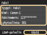 Valitun käyttäjän LDAP-palvelimeen tallennettu käyttäjänimi, faksinumero tai sähköpostiosoite syötetään vastaanottajakenttään.