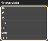 Valitse asiakirjan koko.