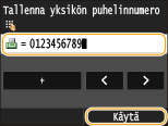 Syötä faksinumero numeropainikkeilla ja napauta <Käytä>.