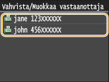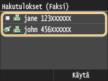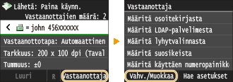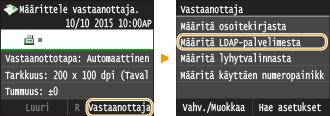 Jos toimistossa on asennettuna LDAP-palvelin, voit määrittää vastaanottajan käyttämällä palvelimessa olevia käyttäjätietoja. Avaa LDAP-palvelin laitteen avulla, etsi asiaankuuluvat käyttäjätiedot ja määrite ne vastaanottajaksi.