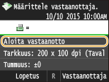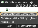 Voit asettaa laitteen vastaanottamaan fakseja automaattisesti, kun tuleva puhelu soi tiettynä aikana. Kytke automaattiseen vastaanottoon