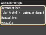 Kun valitaan <Faksi/Puhelin (Autom. kytkin)>