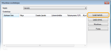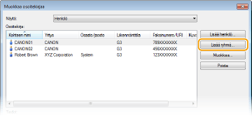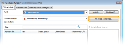 Jos haluat muuttaa tai poistaa tallennettuja vastaanottajia, valitse vastaanottaja kohdasta [Osoitekirja] ja valitse [Muokkaa] tai [Poista].