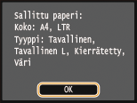 Tarkista, että laitteeseen on lisätty näytössä näkyvää paperikokoa ja -tyyppiä, ja napauta kohtaa <OK>.
