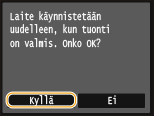Tuonti käynnistyy. Laite käynnistyy uudelleen automaattisesti tietojen tuonnin jälkeen.