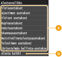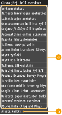 <Verkkoasetukset> <Alusta verkkoasetukset> <Kyllä> Käynnistä laite uudelleen |