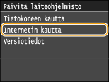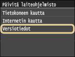 Voit päivittää laiteohjelmiston uusimpaan versioon käyttämällä Canonin palvelinta laitteesta.