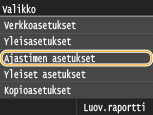 Automaattisen nollauksen tekemisen jälkeen näytettävä näyttö voidaan valita kohdassa <Toiminta automaattisen nollauksen jälkeen>.