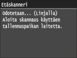 Jos skannausta ei suoriteta määritetyn ajan kuluessa, kun alla oleva näyttö on tullut esiin (laite on online-tilassa skannausta varten), laite siirtyy automaattisesti offline-tilaan. Määritä aika, jonka jälkeen laite siirtyy offline-tilaan. Voit myös määrittää laitteen pysymään online-tilassa.