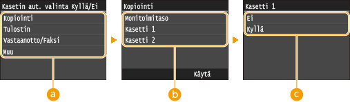 <Kasetin automaattinen valinta Kyllä/Ei>