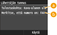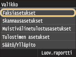 Kaikki faksauksen asetukset ja lyhyet kuvaukset luetellaan. Oletusasetukset on merkitty tikarilla (