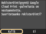 Laitteen rekisteröiminen Google Cloud Print -palveluun