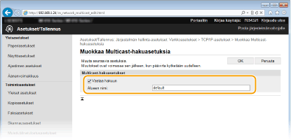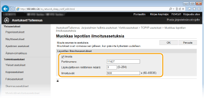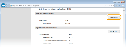 ![]() Jos haluat muuttaa Multicast-haun porttinumeron, katso kohta Porttinumeroiden muuttaminen.
