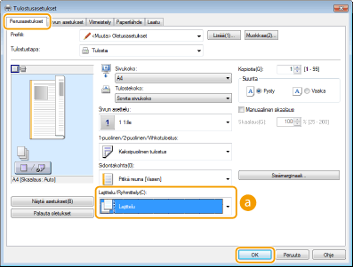Jos valitset [Ei käytössä], tulosteiden lajittelu määräytyy sovelluksessa tehtyjen asetusten mukaan.