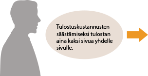 Määritä tulostinajurissa [2 1:lle] käyttäjän oletusasetukseksi. Seuraavat ja myöhemmät tulostustyöt suoritetaan niin, että kaksi sivua kutistetaan ja tulostetaan yhdelle sivulle. Oletusasetusten muuttaminen
