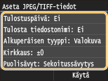 / ja napauta kohtaa <Käytä>.<Kirkkaus> ei ole käytettävissä TIFF-tiedostoille, joita ei ole JPEG-pakattu.
