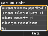 Tämä asetus määrittää, tulostetaanko PDF-tiedoston huomautukset.
