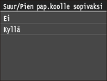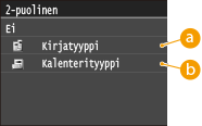 ![]() <2-puolinen>-toiminto ei ehkä ole käytettävissä joidenkin paperikokojen tai -tyyppien kanssa. Paperi