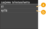 Napauttamalla <Kyllä> voidaan tulostaa väriaineen säästötilassa. Valitse <Kyllä>, jos haluat tarkistaa asettelun tai muita ulkoasun ominaisuuksia ennen suuren työn lopullista tulostamista.