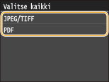 Napauta kohtaa <JPEG/TIFF> tai <PDF>.