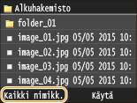 ![]() ![]() Kun valitset <Päiväys/Aika (Nouseva)> tai <Päiväys/Aika (Laskeva)>, tiedostot lajitellaan niiden muokkauspäivän ja -ajan mukaan.