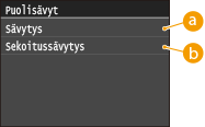 Voit valita tulostustavan puolisävyille (välialue kuvan vaaleiden ja tummien sävyjen välillä) parhaan mahdollisen kuvanlaadun saamiseksi. Napauta kohtaa <Sävytys> tai <Sekoitussävytys>.