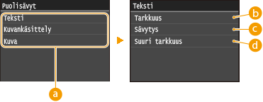 Voit valita alkuperäisen tyypin tulostettavan kuvan mukaan. Valitse <Valokuva etusijalla> tai <Teksti etusijalla>.
