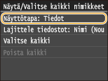 ![]() ![]() Jos valitsit tiedoston ennen kuin napautat kohtaa <Kaikki nimikk.>, voit valita vain samanmuotoisia tiedostoja.