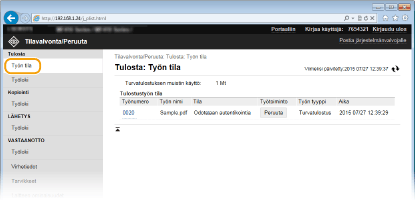 Luettelo parhaillaan tulostettavista tai tulostusta odottavista asiakirjoista näytetään.