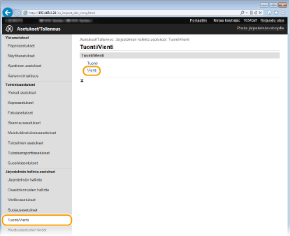 Määritä vietyjen asetustietojen tallennuspaikka näytön ohjeiden mukaisesti.