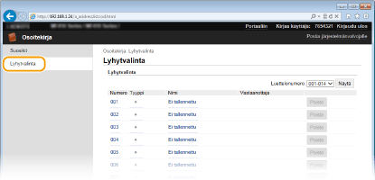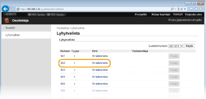 Voit poistaa tallennetun vastaanottajan napsauttamalla vastaavaa [Poista]-painiketta.